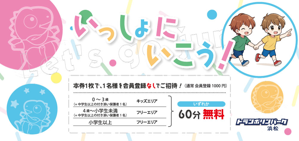 小さなお子さまの「初めてのトランポリン体験」におすすめの券です。